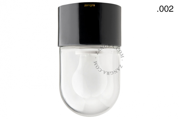 Waterproof porcelain lamp, black shade, 002, transparent glass - Zangra