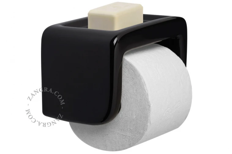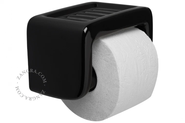 porcelanowy uchwyt na papier toaletowy z mydelniczką - czarny- Zangra